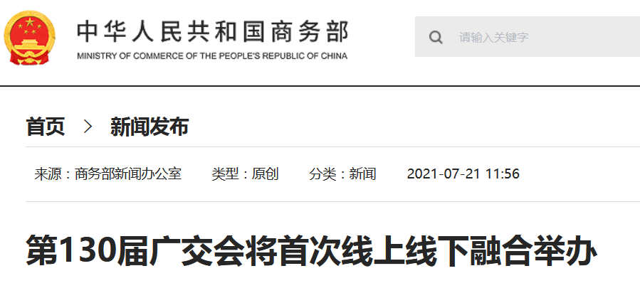 广交会是中国历史最长、规模最大、商品种类最全、成交效果最好的综合性国际贸易盛会。本届广交会适逢第130届,又在中国共产党成立100周年之际举办,意义重大。商务部将与广东省人民政府共同抓紧完善展览组织、庆祝活动、疫情防控等各项方案,更好发挥广交会全方位对外开放平台作用,巩固拓展疫情防控和经济社会发展成果,服务构建以国内大循环为主体、国内国际双循环相互促进的新发展格局。欢迎中外企业和客商积极参加第130届广交会,共襄贸易盛举,共创美好未来。